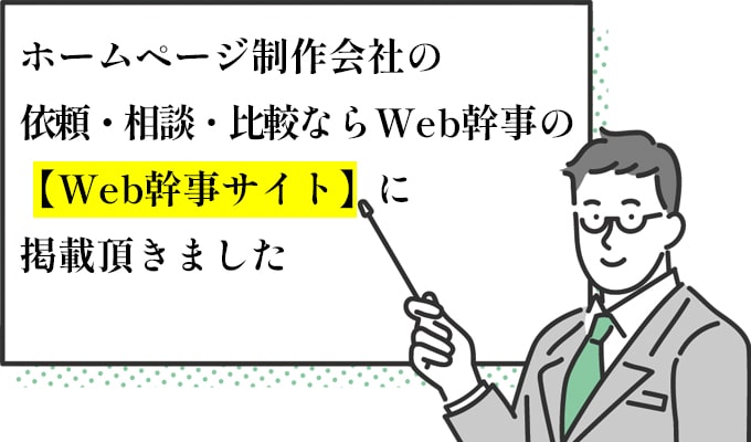 日本最大級のホームページ制作相談・依頼サイトの「Web幹事」に掲載いただきました。 「Web幹事」はホームページ制作・通販サイト・採用サイトなどのWEB制作を希望 […]