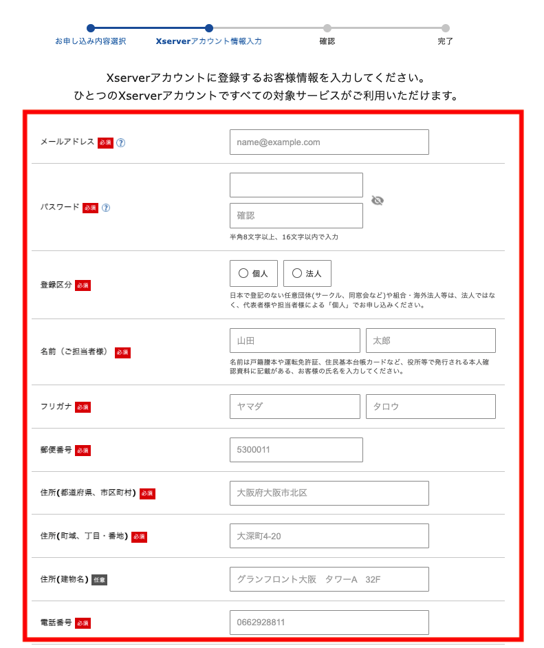 すべて入力できたら、「Xserverアカウントの登録へ進む」をクリックします。