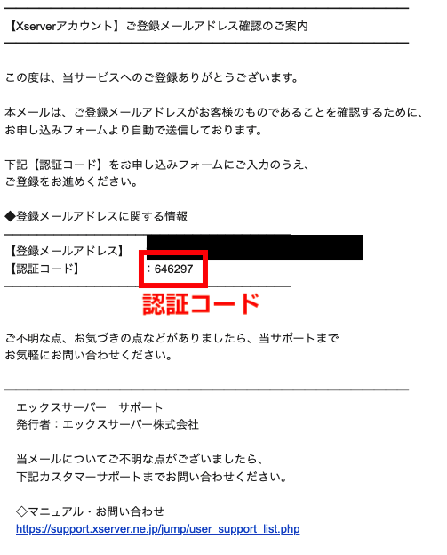 送られてきたメールの中にある6桁の確認コードを先ほどのお申し込みフォームに入力します。