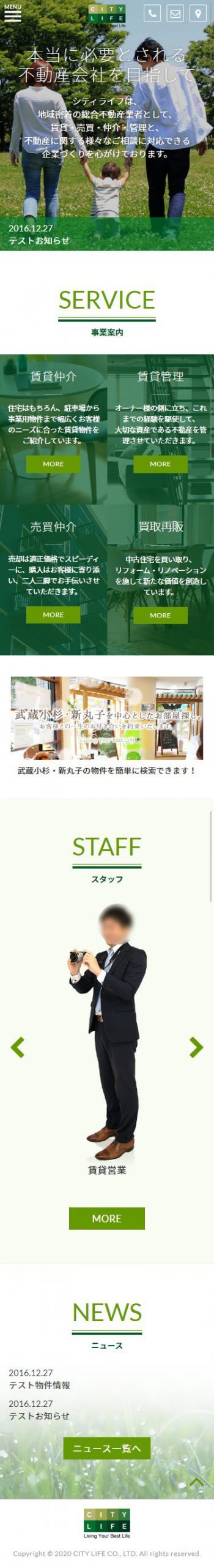 川崎市新丸子の不動産売買、賃貸、仲介、管理を行う「シティライフ」のコーポレートサイトのリニューアルをWordPressにて担当させていただきました。