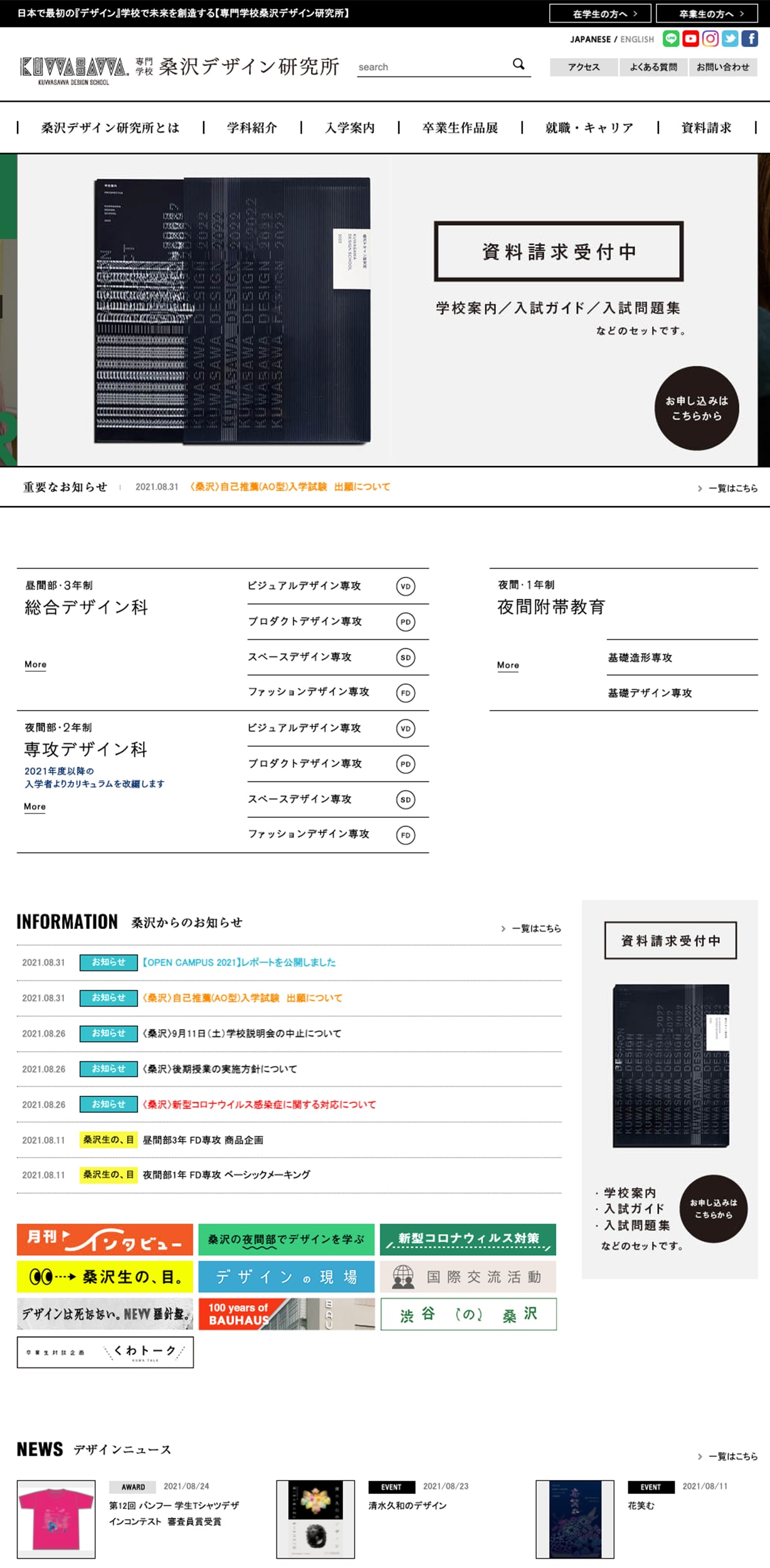 専門学校桑沢デザイン研究所様のホームページをWordPressにてリニューアルをさせていただきました。